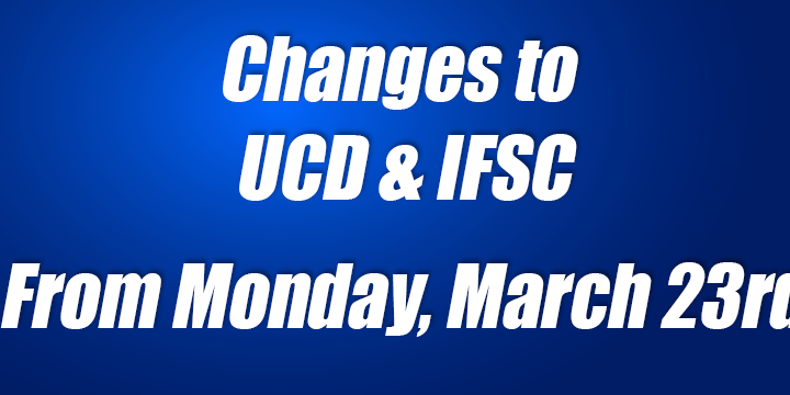 The only service that will operate from Dundalk & Drogheda will be the 07:00 to IFSC, please note the direct at 07:00 is now cancelled.