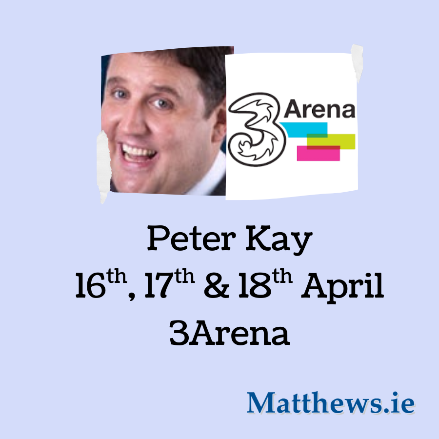 Book Now Going to see Peter Kay live? Let Matthews.ie take you there. Comfortable return coach transport to Dublin with no parking stress. Book your seat now. Description The pick…