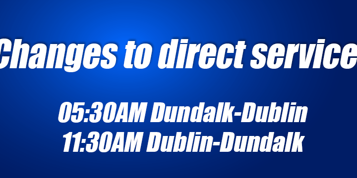 Effective March 25th, the 05:30 Dundalk to Dublin direct and the 11:30 Dublin to Dundalk direct will be temporarily suspended.